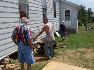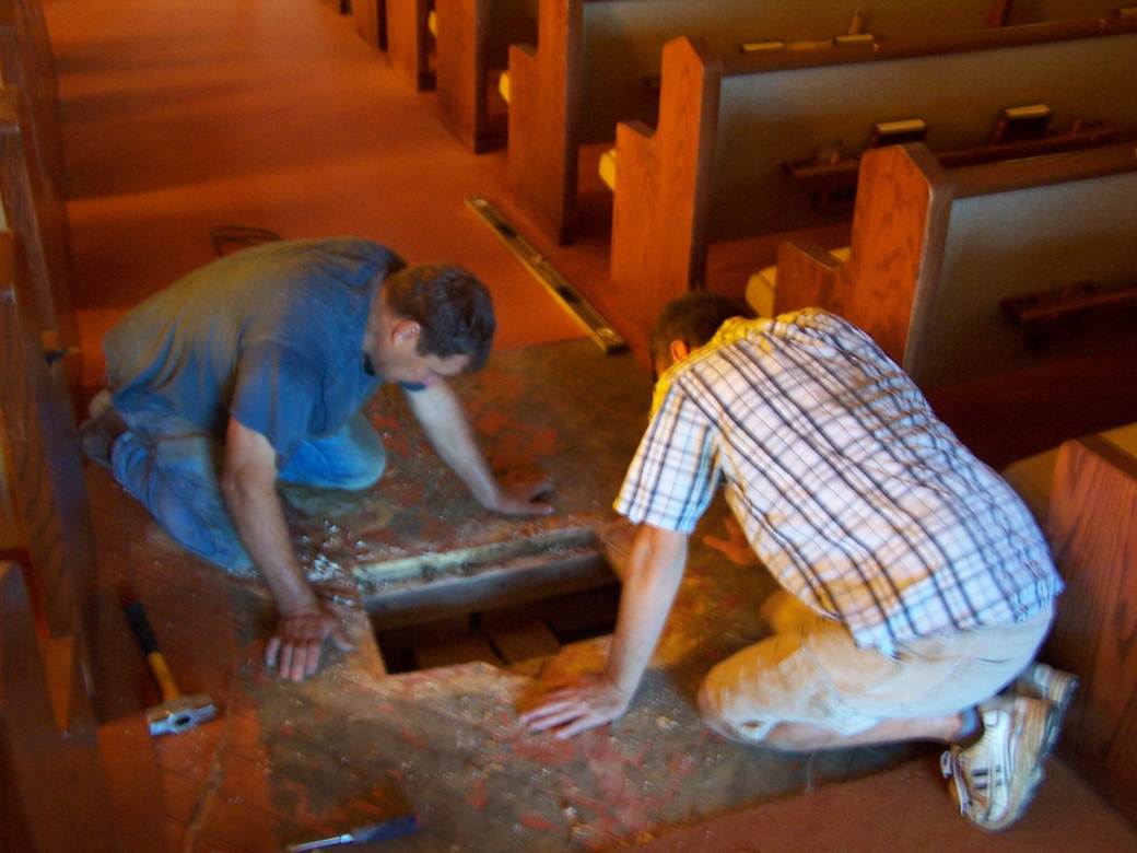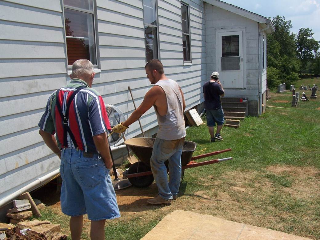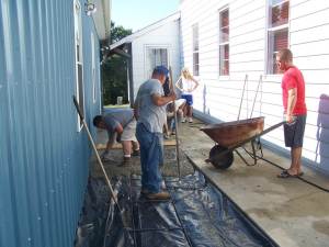 During the week of July 17 to the 21 our brothers and sisters from Springfield Baptist joined us for an incredible week of fellowship and hard work as they joined us to help make some much needed repairs to the church building. We were able to get a new concrete walk poured, Sunday School room walls stripped and painted, old carpet removed, basement cleaned and walls and floors painted, a new roof installed on the foyer, and a sanctuary floor repaired that was sagging because of rotted floor supports. The work was hard but the fellowship was sweet and God was incredible as he poured out his love for this old church through those that helped.